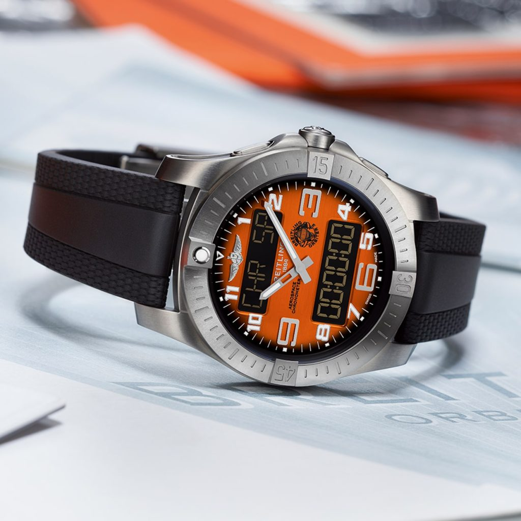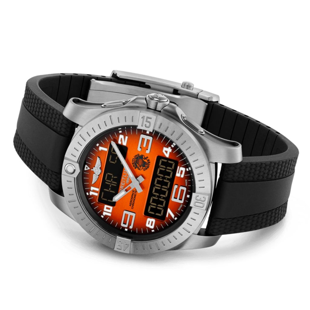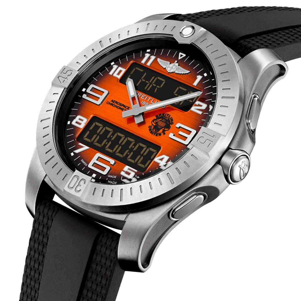 This timepiece, with its vibrant orange dial mirroring the capsule’s colour and adorned with the mission logo, is presented on a titanium bracelet or a black rubber strap. Its titanium case, chosen for its superior strength-to-weight ratio, houses the COSC-certified Breitling Manufacture Caliber B70. This SuperQuartz™ movement, ten times more accurate than standard quartz, powers a multitude of features including a 1/100th of a second chronograph (with split-time and flyback functions), countdown timer, second time zone, two alarms, lap function, and perpetual calendar.