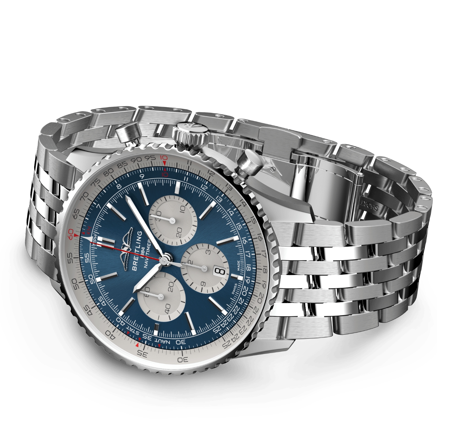 Breitling’s iconic pilot’s chronograph – for the journey. In 1952, Willy Breitling developed a wrist-worn chronograph with a circular slide rule that would allow pilots to perform all necessary flight calculations. Two years later, the Aircraft Owners and Pilots Association (AOPA) announced the design as its official timepiece. The “navigation timer” – or Navitimer – was born. The AOPA was (and remains) the largest pilots’ club in the world, counting nearly every US aviator among its ranks. As the defacto pilot’s watch throughout the glory days of civil aviation, the Navitimer was worn by airline captains and aircraft enthusiasts. It even made its way into space on the wrist of astronaut Scott Carpenter in 1962. And it wasn’t only pilots drawn to the watch’s irrepressible aesthetic. Celebrities of the day such as Miles Davis and Serge Gainsbourg were devotees, proving that the Navitimer had style as well as function. There have been many iterations of Breitling’s icon since its debut 70 years ago, but this new Navitimer captures its most classic features, while enhancing them with modern refinements. A flattened slide rule and a domed crystal create the illusion of a sleeker profile. Alternating polished and brushed metal elements give a lustrous, yet understated finish. Most notably, new colors in shades of blue, green and copper, define the updated dial options. And if there is one update sure to spark nostalgia, it’s the return of the AOPA wings to their original position at 12 o’clock. For 70 years, Breitling’s original pilot’s watch has been beloved by aviators and tastemakers in equal measure. Worn by astronauts in space and the biggest stars on earth, it is Breitling’s most iconic timepiece and one of the most recognizable watches of all time.