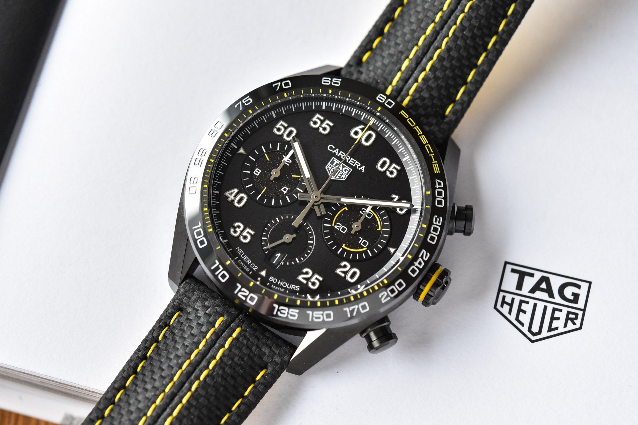 True to its racing genes, the case is powered by our in-house Heuer 02 automatic movement with an 80-hour power reserve.