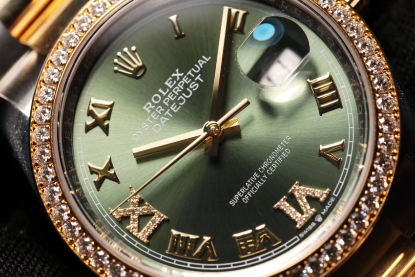 Its dial features a Roman VI and IX in 18 ct gold, set with 24 diamonds. The light reflections on the case sides and lugs highlight the elegant profile of the 36 mm Oyster case, which is fitted with a diamond-set bezel. Aesthetically, the Datejust has spanned eras, while retaining the enduring codes that make it, notably in its traditional versions, one of the most recognized and recognizable of watches.