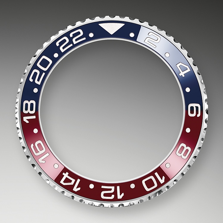 | Bezel: | 18k white gold bidirectional rotating 24-hour graduated blue and red Pepsi bezel. |